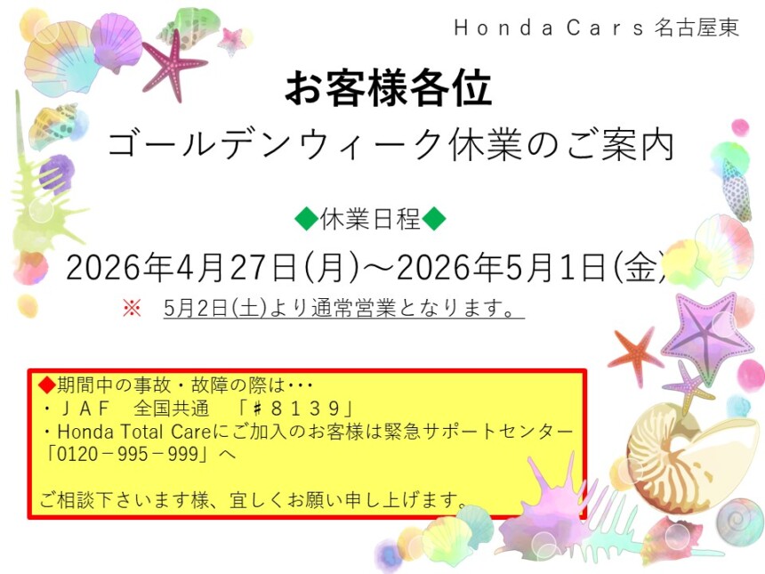 ゴールデンウィーク休業のご案内