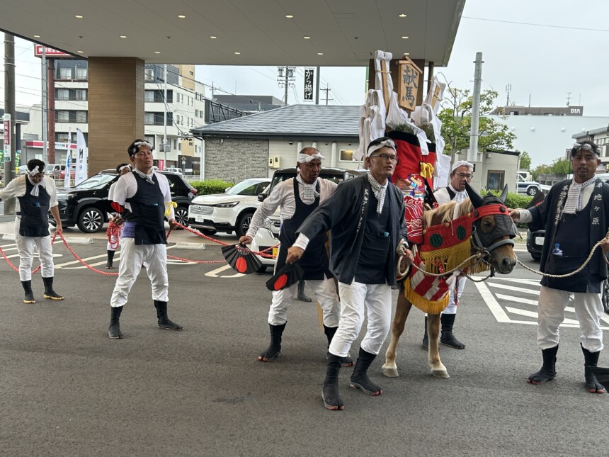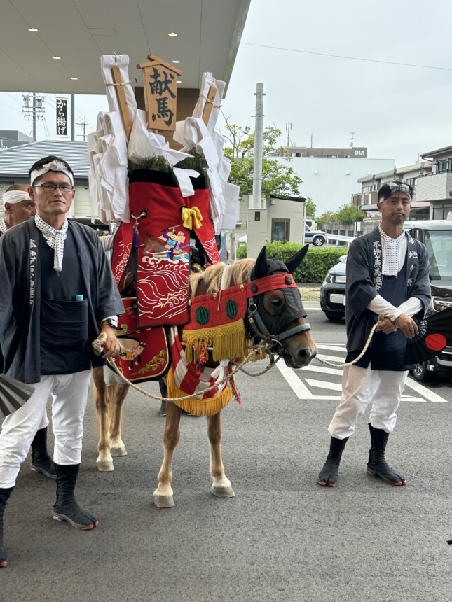 10/12(日)本地ヶ原警固隊の皆様とお馬さんが本地ヶ原店に来てくださり、お店の発展を祈願していただきました。